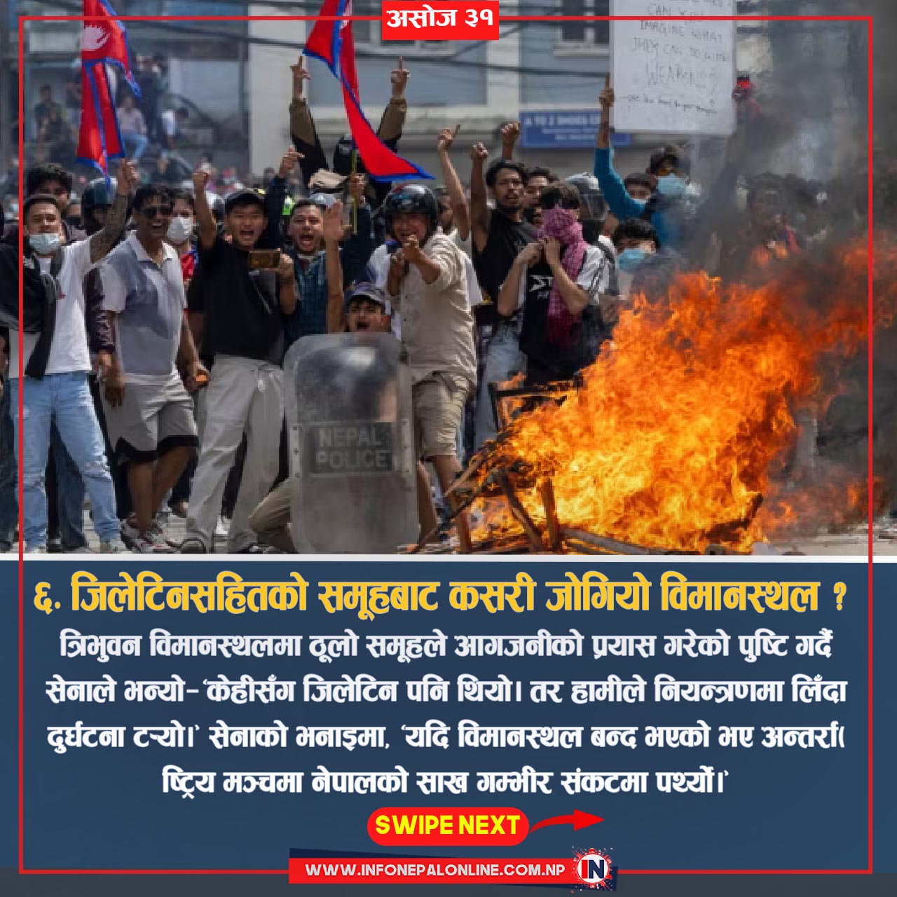 Prime Minister K P Sharma Oli, despite his two-thirds majority, was forced to resign, while former Prime Minister Sher Bahadur Deuba and then Foreign Minister Arzu Rana came under attack at their own residences. Party offices, police posts, and private homes of several leaders were reduced to ashes.